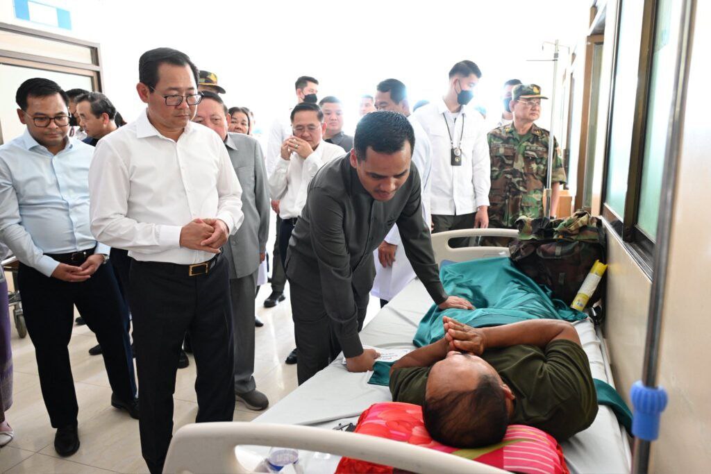 PTH÷ នៅព្រឹកថ្ងៃទី២០ ខែមករា ឆ្នាំ២០២៦ ឯកឧត្តម សួស ប្រាថ្នា អគ្គនាយកនៃអគ្គនាយកដ្ឋានរដ្ឋបាល ក្រសួងមហាផ្ទៃ អញ្ជើញអមដំណើរឯកឧត្តមអភិសន្តិបណ្ឌិត ស សុខា ឧបនាយករដ្ឋមន្រ្តី រដ្ឋមន្រ្តីក្រសួងមហាផ្ទៃ ជាមួយឯកឧត្តម កើត រិទ្ធ ឧបនាយករដ្ឋមន្រ្តី រដ្ឋមន្រ្តីក្រសួងយុត្តិធម៌ និងជាប្រធានក្រុមការងាររាជរដ្ឋាភិបាលចុះមូលដ្ឋានខេត្តបាត់ដំបង ចុះជួបសំណេះសំណាលសាកសួរសុខទុក្ខនិងឧបត្ថម្ភថវិកាជូនដល់កងទ័ពជួរមុខ ដែលបាននិងកំពុងសម្រាកព្យាបាលនៅមន្ទីរពេទ្យភូមិភាគ៥ ខេត្តបាត់ដំបង។