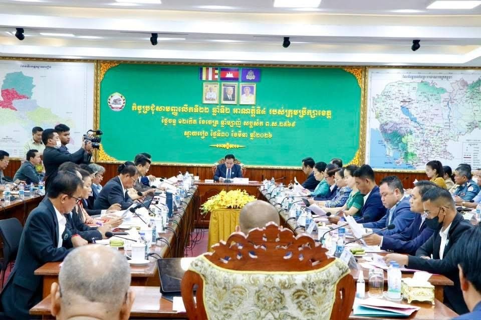 PTH÷ នាព្រឹកថ្ងៃទី៣០ ខែមីនា ឆ្នាំ២០២៦ ឯកឧត្តម ម៉ែន វិបុល ប្រធានក្រុមប្រឹក្សាខេត្តស្វាយរៀង បានអញ្ជើញដឹកនាំកិច្ចប្រជុំសាមញ្ញលើកទី២២ ឆ្នាំទី២ អាណត្តិទី៤ របស់ក្រុមប្រឹក្សាខេត្ត និងមានការអញ្ជើញចូលរួមពីឯកឧត្តម ប៉េង ពោធិ៍សា អភិបាល នៃគណៈ អភិបាលខេត្ត ព្រមទាំងលោក លោកស្រី អភិបាលរង នៃគណៈ អភិបាលខេត្ត លោក លោកស្រី ប្រធានមន្ទីរ អង្គភាពពាក់ព័ន្ធជុំវិញខេត្ត និងទីចាត់ការទាំង៥របស់សាលាខេត្ត នៅសាលប្រជុំនន្ទី អគារ ខ សាលាខេត្តស្វាយរៀង។ របៀបវារៈនៃកិច្ចប្រជុំមានដូចខាងក្រោម៖១-ពិនិត្យ និងអនុម័ត លើសេចក្តីព្រាងកំណត់ហេតុកិច្ចប្រជុំសាមញ្ញលើកទី ២១២-ពិនិត្យ និងអនុម័តលើសេចក្តីព្រាងរបាយការណ៍ស្តីពីការអនុវត្តការងារប្រចាំខែមីនា និងទិសដៅបន្តខែមេសា ឆ្នាំ២០២៦ របស់រដ្ឋបាលខេត្ត៣-អនុម័តតារាងបែងចែកប្រាក់រង្វាន់លើកទឹកចិត្ត ដែលបានមកពីការផ្តល់សេវារដ្ឋបាល ជូនមន្ត្រីរាជការសាលាខេត្ត ប្រចាំខែមីនា ឆ្នាំ២០២៦៤-ពិនិត្យ និងអនុម័តរបាយការណ៍ស្តីពីការអនុវត្តកិច្ចលទ្ធកម្មប្រចាំត្រីមាសទី១ និងទិសដៅបន្តត្រីមាសទី២ ឆ្នាំ២០២៦ របស់រដ្ឋបាលខេត្ត៥-ស្តាប់របាយការណ៍ប្រចាំខែមីនា និងទិសដៅការងារបន្តខែមេសា ឆ្នាំ២០២៦ របស់គណៈកម្មាធិការពិគ្រោះយោបល់កិច្ចការស្ត្រី និងកុមារនៃរដ្ឋបាលខេត្ត៦-សេចក្តីផ្សេងៗ៕